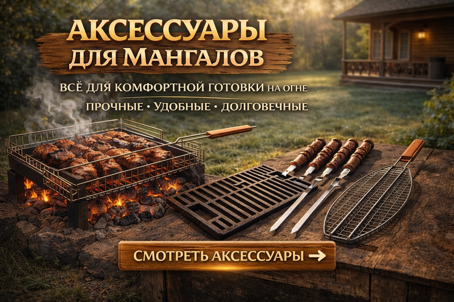 Шампуры, решетки-гриль, торцевые доски и многое другое. У нас есть всё необходимое для комфортного и приятного приготовления на огне.