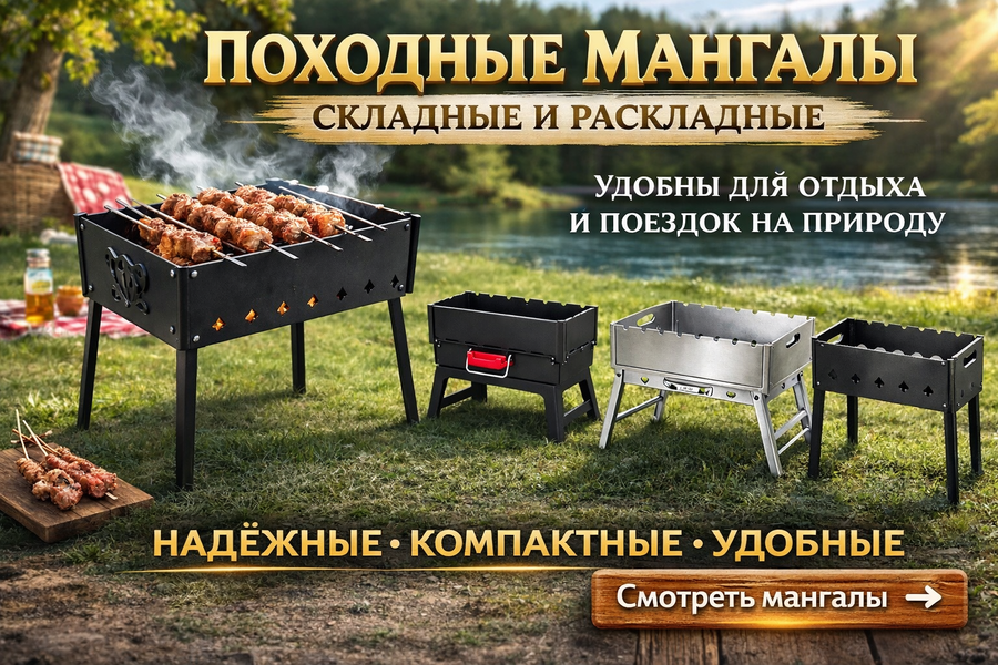 Классические мангалы и модели с подказанником – у нас вы найдете всё для барбекю и шашлыков. Разборные и удобные в использовании, они подойдут как для дачи, так и для выездов на природу.