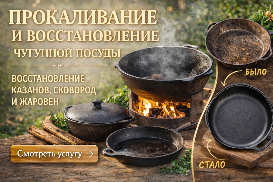 Подготовим новый казан к использованию или поможем восстановить старую чугунную посуду.