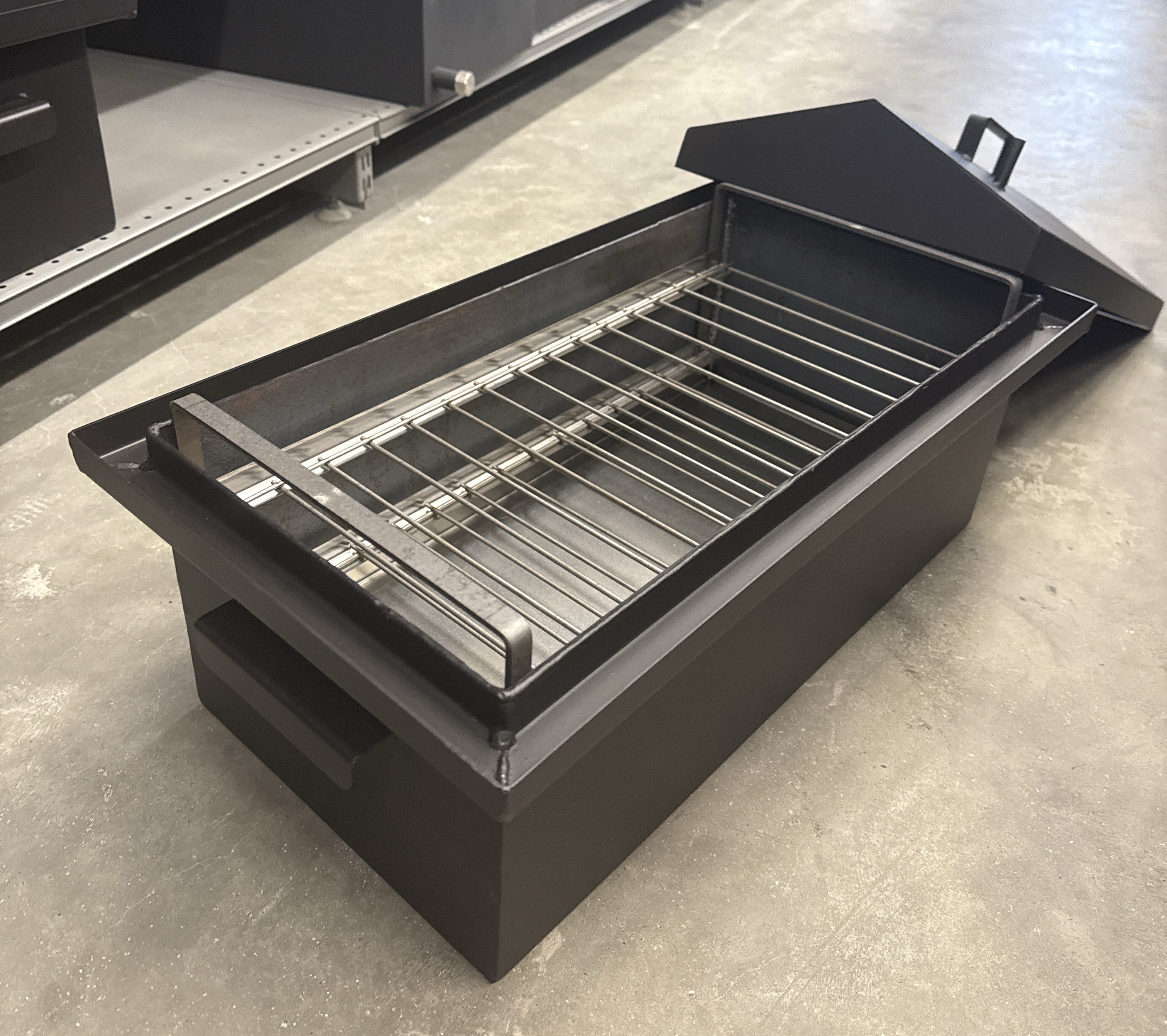Мощное ребро жесткости на крышке защищает её от деформации при сильном перегреве. Также коптильня комплектуется нержавеющими решетками, обеспечивающими удобство при приготовлении блюд.