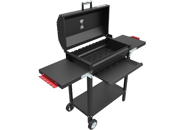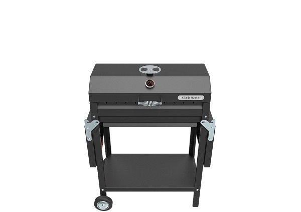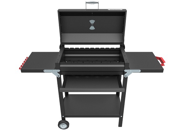 - Одна из полок снабжена рукояткой для перемещения (устанавливается на стороне противоположной колесам)