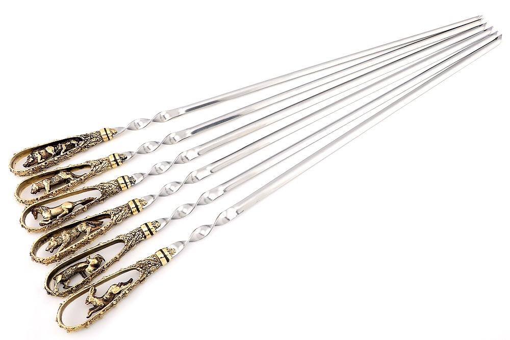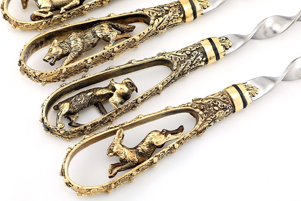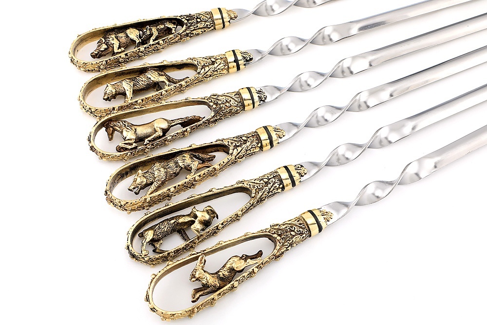 Подарочные шампуры ручной работы: Звери латунь в ободке.