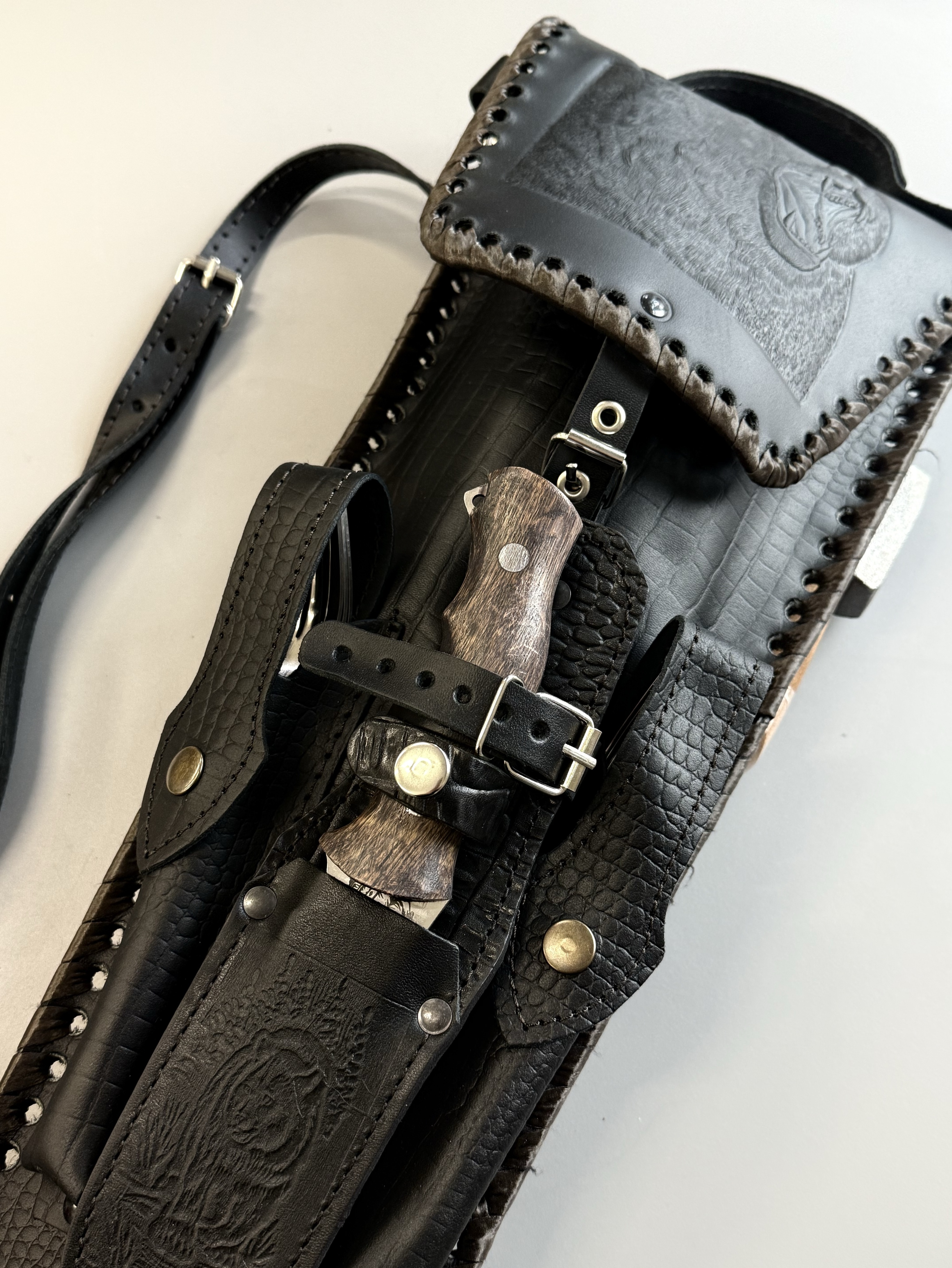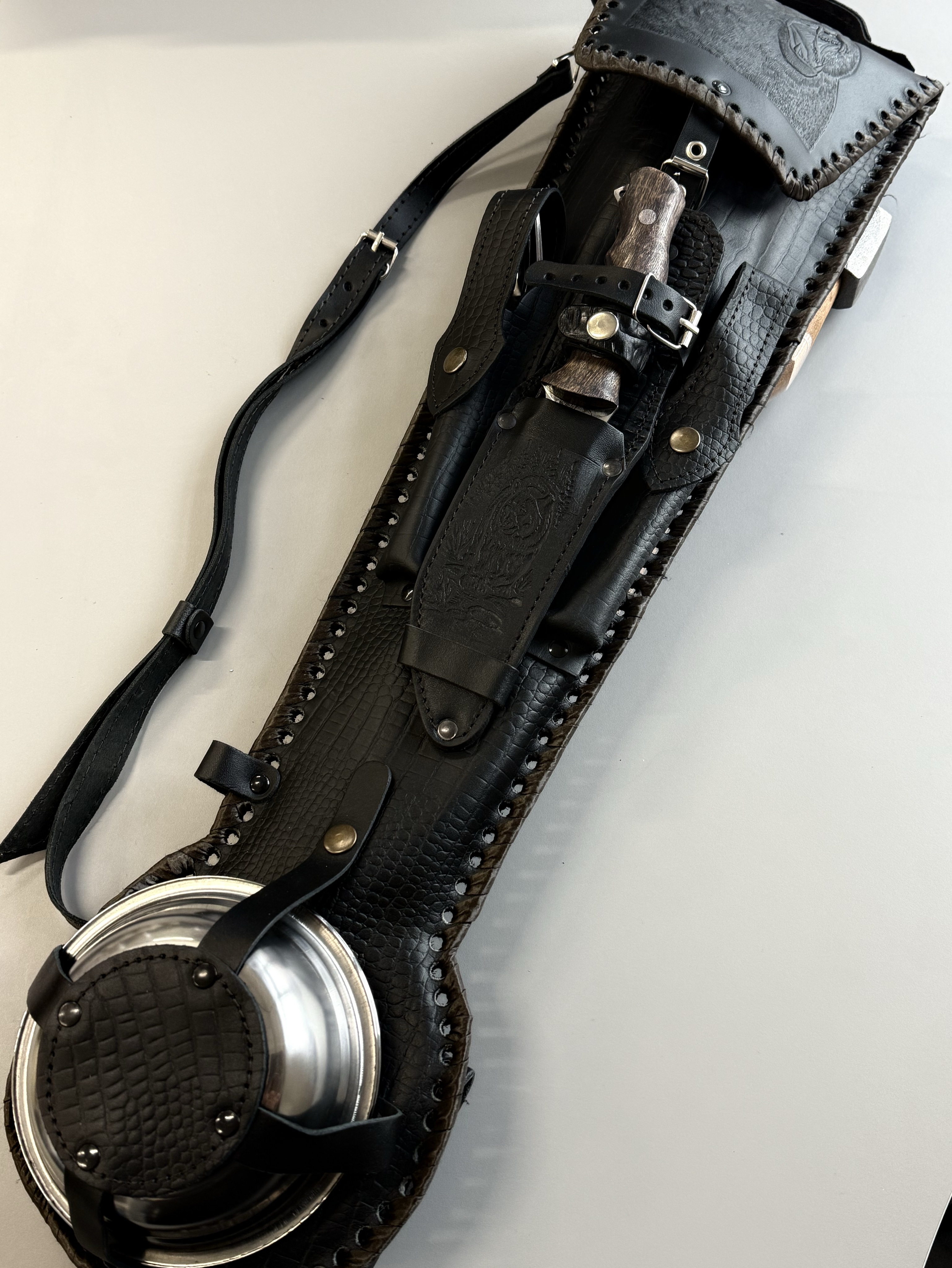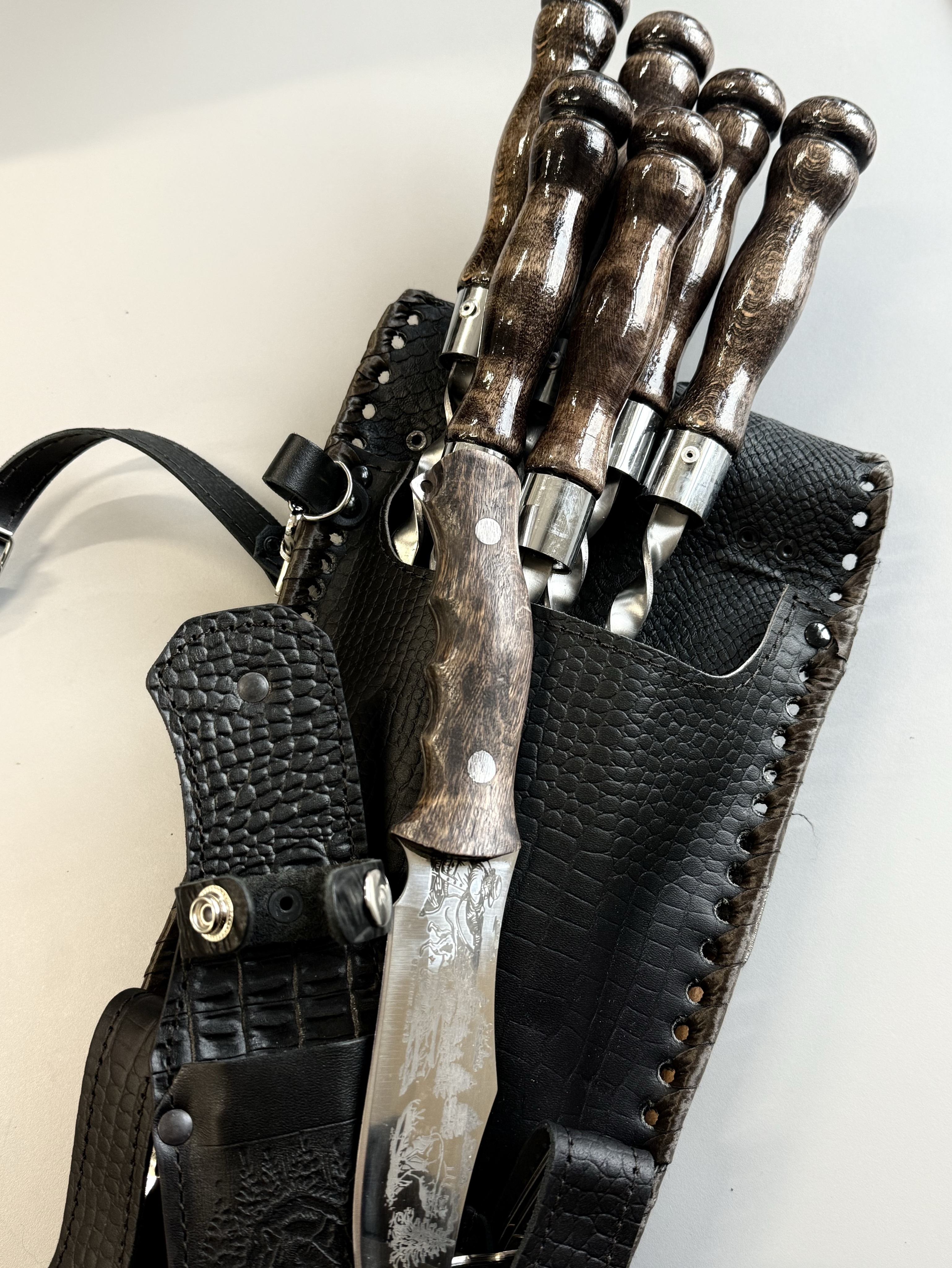 Набор шампуров в кожаном чехле «Кавказ Black» идеально подходит для походов и поездок на пикник.