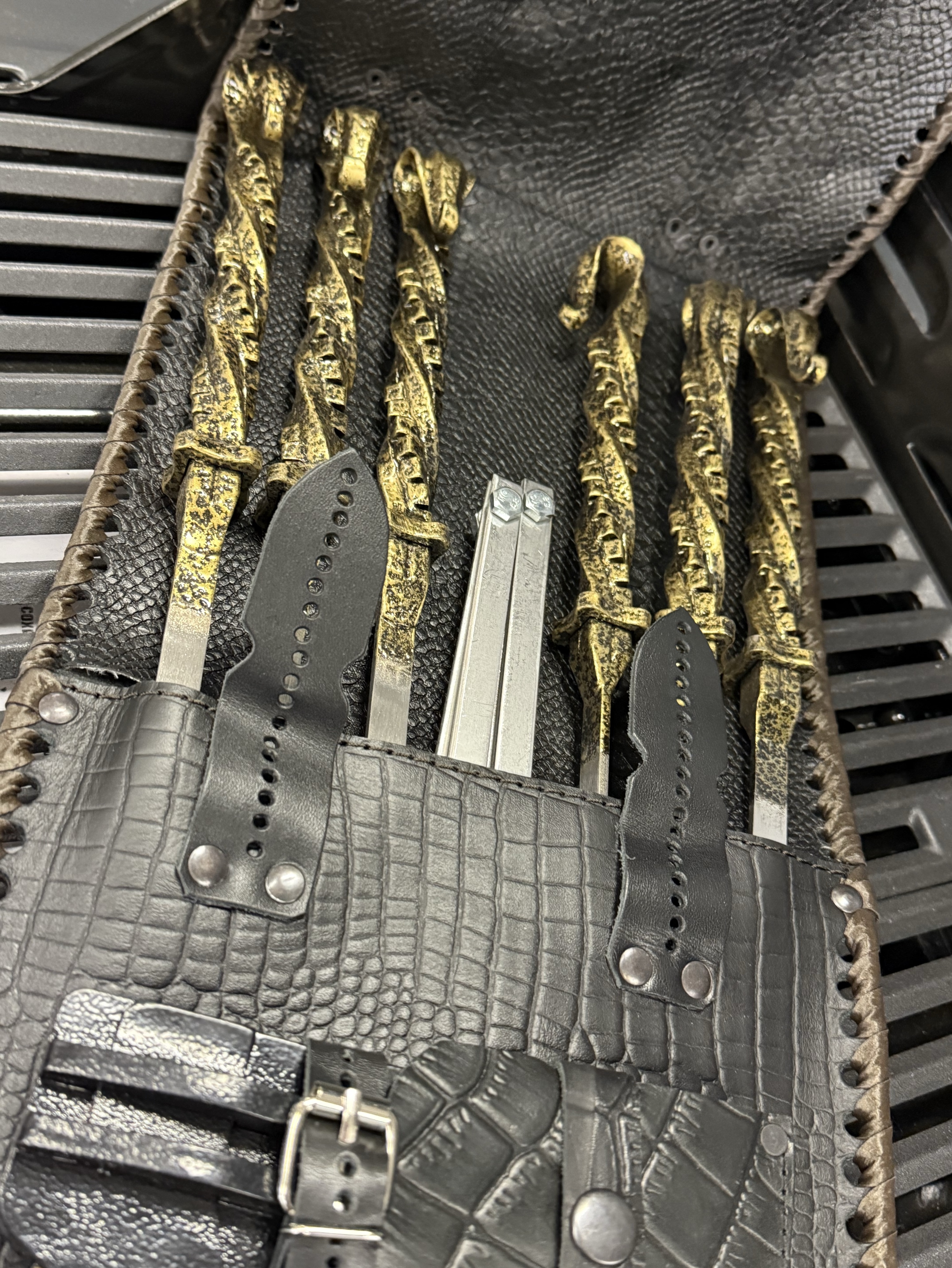 ✔️ 6 кованных шампуров с ручкой-крюком цвета золото