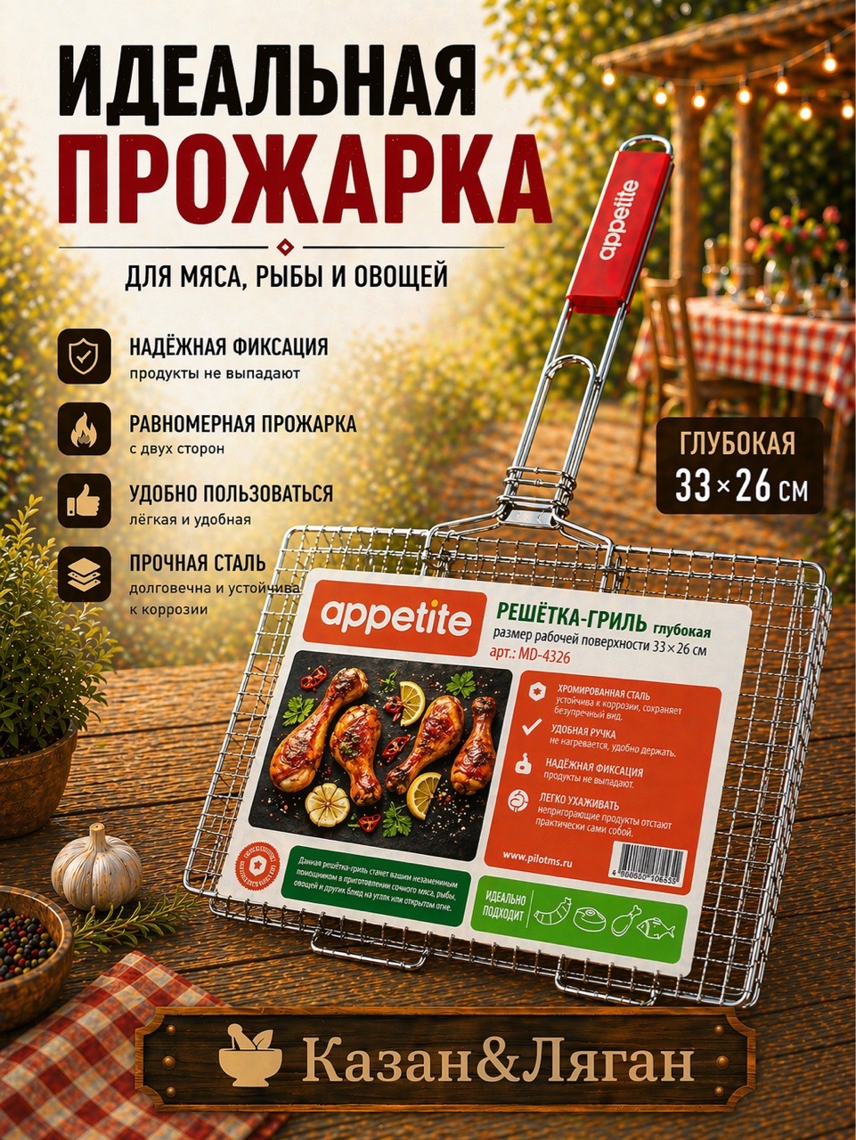 Гриль-решётка «33х24 Глубокая» — идеальный выбор любителей вкусных блюд на открытом огне! Вы сможете готовить большие объёмы еды одновременно благодаря просторной поверхности, а глубокие бортики предотвратят падение сока и жира, сохраняя аромат и сочность блюда. Удобная конструкция облегчает чистку после использования – наслаждайтесь процессом готовки без лишних хлопот! Наслаждайтесь каждым приёмом пищи, приготовленным с заботой дома!