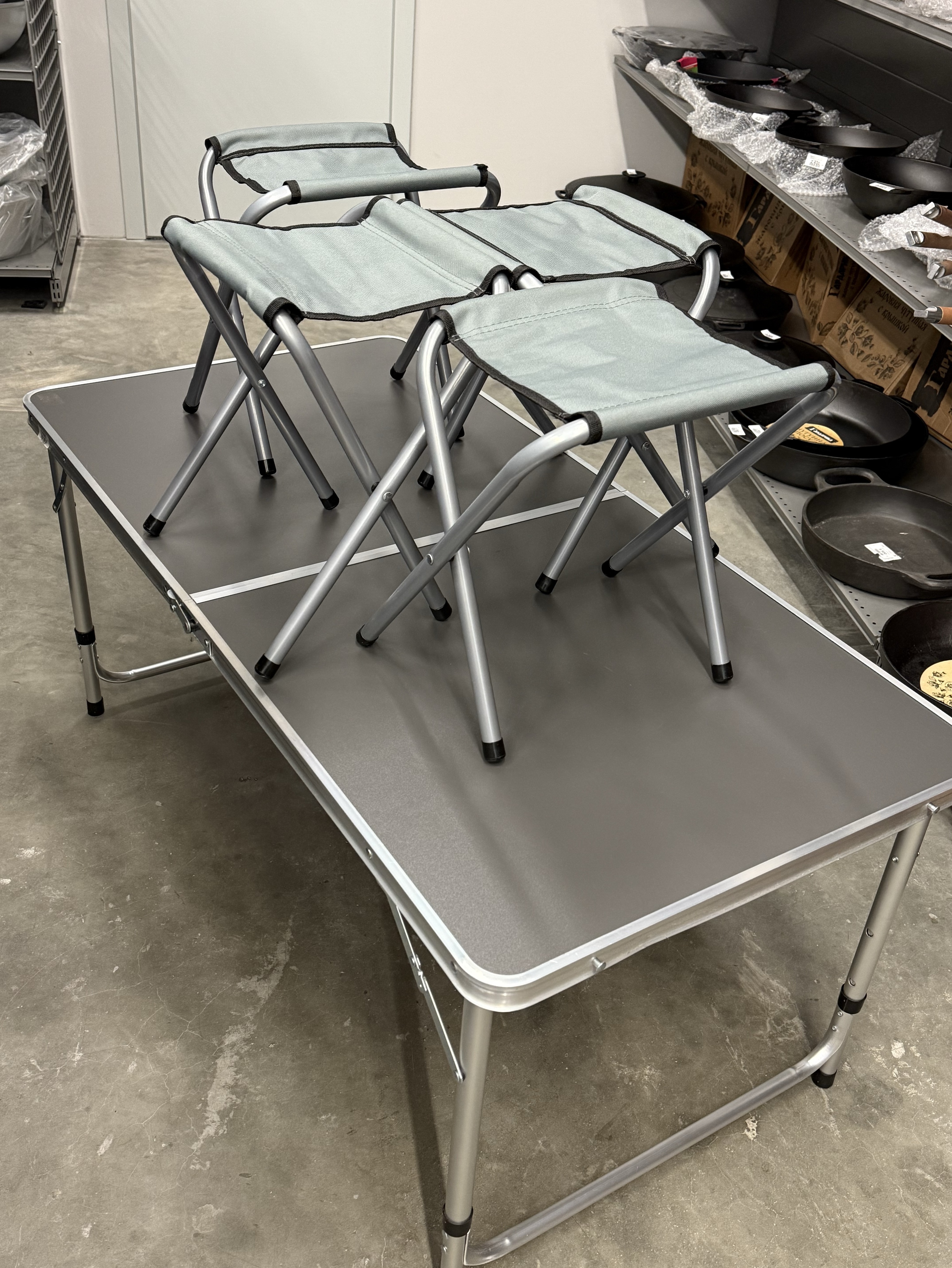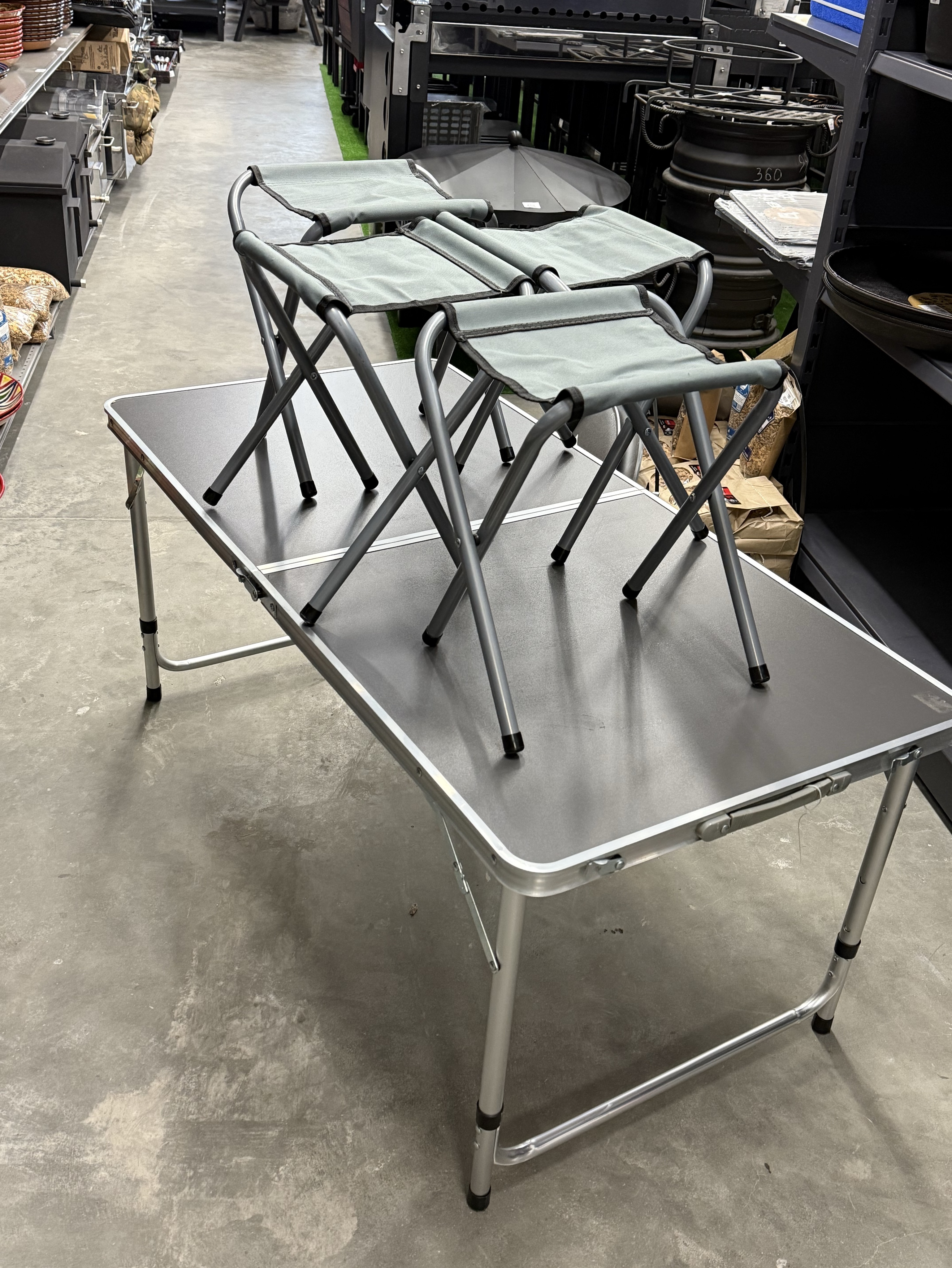 Складной стол + 4 стула – необходимый аксессуар для пикника или похода, который состоит из раскладного алюминиевого стола с пластиковой столешницей и стульями. Комплект мебели можно взять с собой на рыбалку, охоту, привезти на дачу или поставить в саду загородного дома. Набор складной садовой мебели занимает мало места, немного весит, хранится в маленьком чемоданчике, который быстро трансформируется в полноценный обеденный гарнитур.