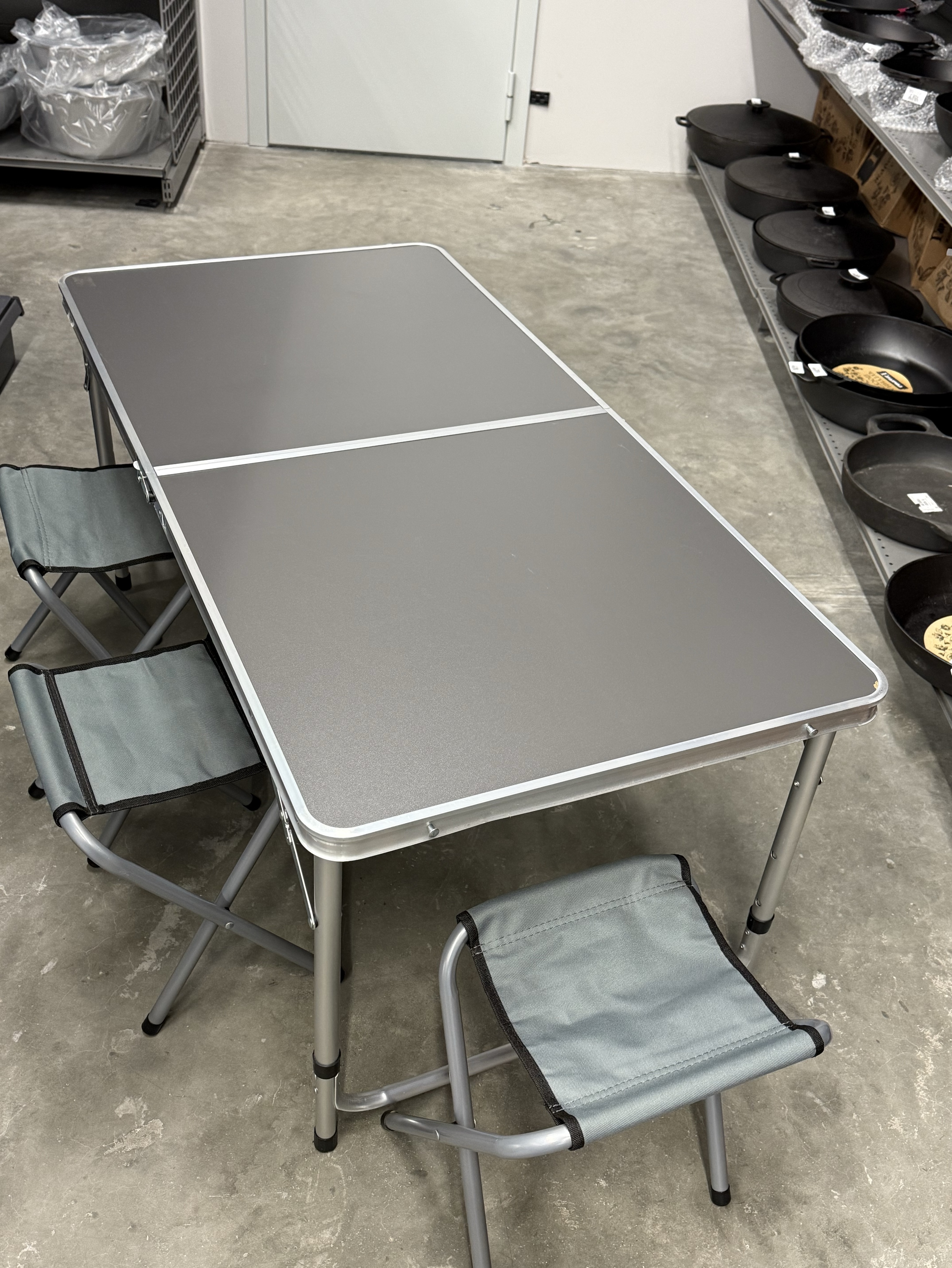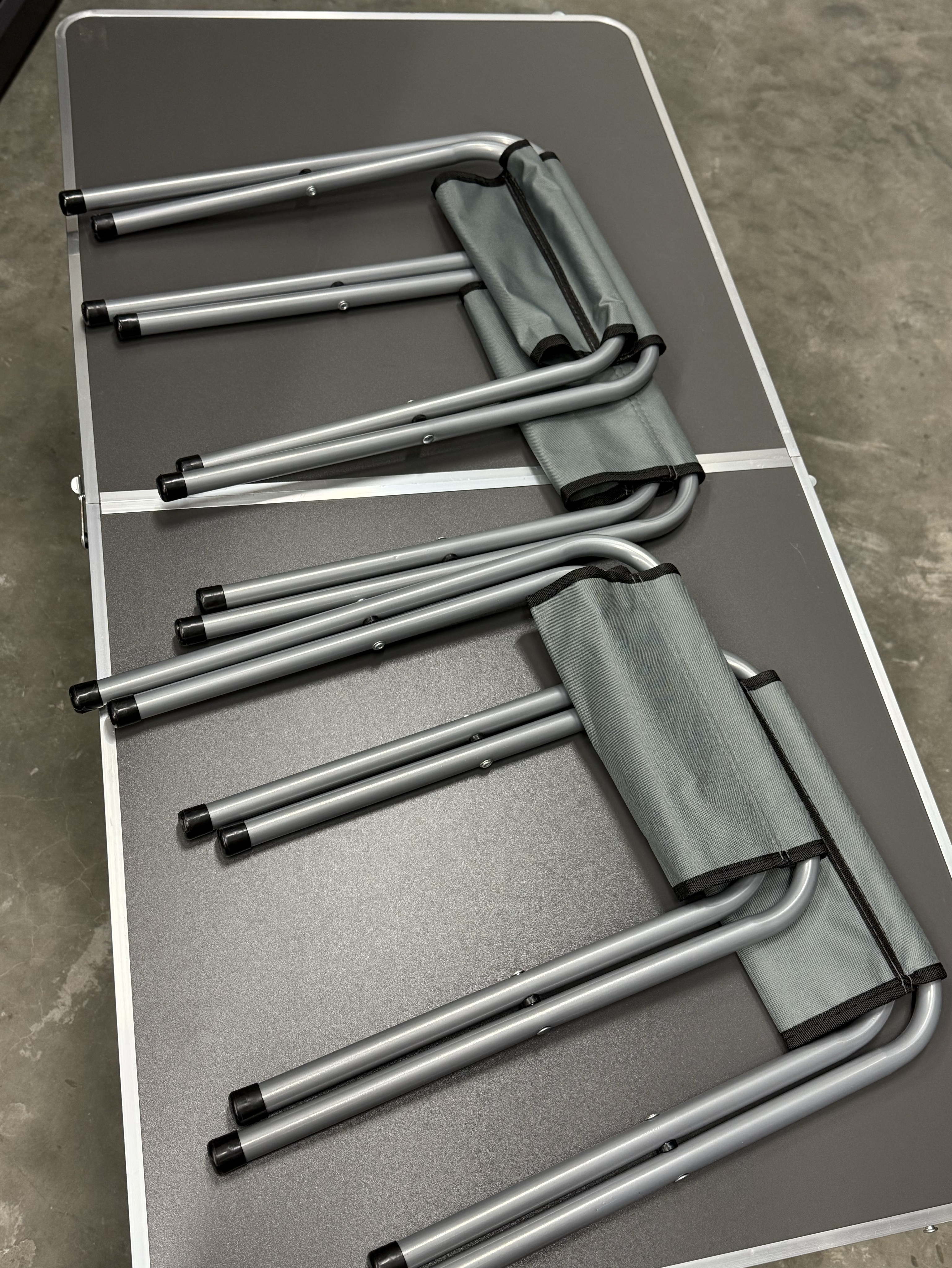 Каркас туристического стола изготовлен из алюминиевого профиля, поверхность столика - из водостойкого пластика, каркас стула из металлической трубы, покрыт водоотталкивающей тканью, которая не промокает, легко чистится от загрязнений и устойчива к повреждениям. Легкая, но прочная металлическая основа раскладного стола позволяет выдерживать 20 кг веса, а размер столешницы - (1020*500 мм) - комфортно сидеть за ним большой компании. Складной стул выдерживает 90 кг. Туристический стол раскладывается в два положения по высоте: 445 и 610 мм, а каждый стул - на 330 мм. Вес набора в собранном виде - 8 кг.
