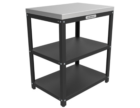 Стол оборудован двумя полками. Это позволяет удобно разместить все необходимые инструменты и аксессуары для приготовления пищи. Регулировочные опоры ножек позволяют легко настроить стол под любой рост и обеспечить комфортное использование.